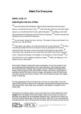 The thing gatekeepers have to do above all, of course, is to stay awake. This is the warning Jesus issues so solemnly to his followers, as they face the troubled time that’s coming upon them, upon Israel, upon Jerusalem, and indeed in a measure on the whole world...