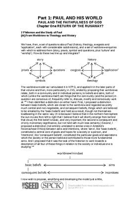 We have, then, a set of questions about Paul (history, theology, exegesis and ‘application’, each with considerable subdivisions), and a set of worldview-enquiries with which to address them (story, praxis, symbol and questions, plus ‘culture’ and ‘worship’). How do these two line up and integrate?...
