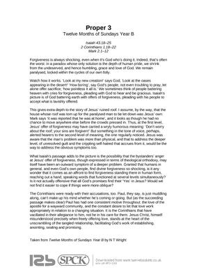 Taken from Twelve Months of Sundays Year B by N T Wright