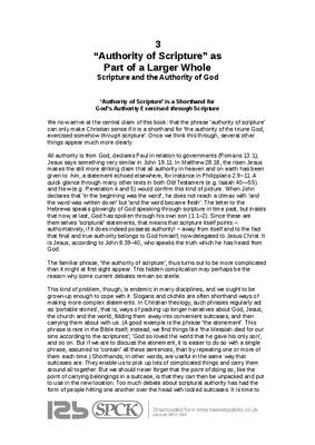 We now arrive at the central claim of this book: that the phrase ‘authority of scripture’ can only make Christian sense if it is a shorthand for ‘the authority of the triune God, exercised somehow through scripture’. Once we think this through, several other things appear much more clearly...
