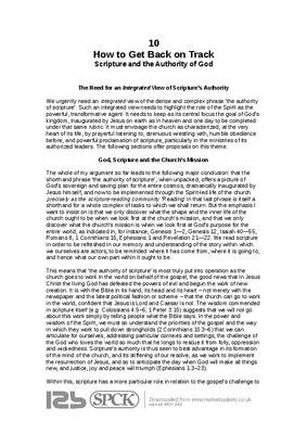 We urgently need an integrated view of the dense and complex phrase ‘the authority of scripture’. Such an integrated view needs to highlight the role of the Spirit as the powerful, transformative agent. It needs to keep as its central focus the goal of God’s kingdom, inaugurated by Jesus on earth as in heaven and one day to be completed under that same rubric. It must envisage the church as characterized, at the very heart of its life, by prayerful listening to, strenuous wrestling with, humble obedience before, and powerful proclamation of scripture, particularly in the ministries of its authorized leaders. The following sections offer proposals on this theme...