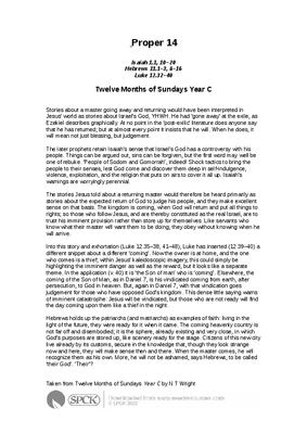 Stories about a master going away and returning would have been interpreted in Jesus’ world as stories about Israel’s God, YHWH. He had ‘gone away’ at the exile, as Ezekiel describes graphically. At no point in the ‘post-exilic’ literature does anyone say that he has returned; but at almost every point it insists that he will. When he does, it will mean not just blessing, but judgement...