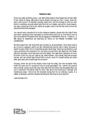 Even now, after all these years, I can still hardly believe what happened on that night in the month of Kislev, although I'll never forget it as long as I live. I mean, there we were, just a bunch of ordinary, working class men, not rich enough to own our own flocks or anything, we just looked after them for our master, and yet for some reason, we were chosen by God to be visited by angels, and to be the first ones to find out about the birth of the Messiah!