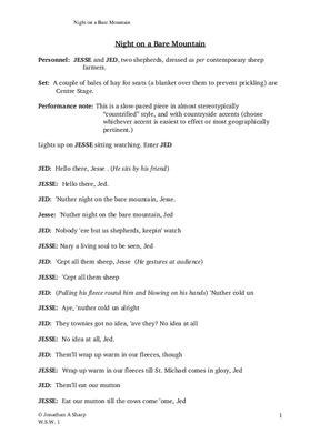 This piece may be used as part of worship or as the first in a series of sketches (others also on the website) that slot directly into the Roger Jones' musical,'While shepherds watched'.