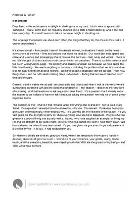 It’s at every level – from people I see on the streets in town, to situations I watch on the news - everywhere all the time – lives and actions that leave me shaken. Our world demands speed and noise and violence and increasingly that is how we live our lives – fast, noisy and violent. There is too little thought of others and too much concentration on ourselves.