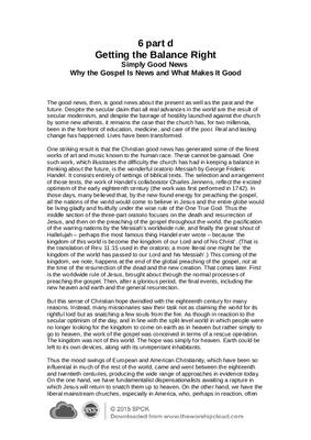 The good news, then, is good news about the present as well as the past and the future. Despite the secular claim that all real advances in the world are the result of secular modernism, and despite the barrage of hostility launched against the church by some new atheists, it remains the case that the church has, for two millennia, been in the forefront of education, medicine, and care of the poor. Real and lasting change has happened. Lives have been transformed…