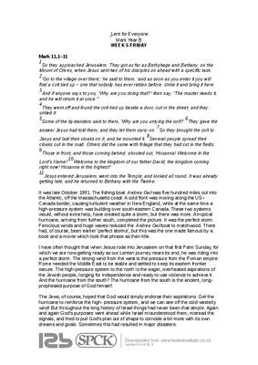 I have often thought that when Jesus rode into Jerusalem on that first Palm Sunday, for which we are now getting ready as our Lenten journey nears its end, he was riding into a perfect storm...