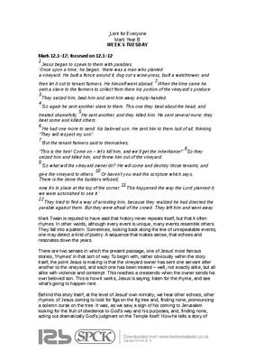 Taken from Lent for Everyone Mark Year B