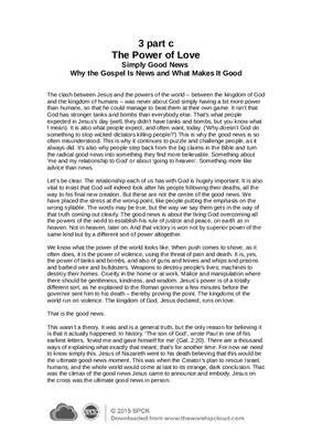 The clash between Jesus and the powers of the world – between the kingdom of God and the kingdom of humans – was never about God simply having a bit more power than humans, so that he could manage to beat them at their own game. It isn’t that God has stronger tanks and bombs than everybody else. That’s what people expected in Jesus’s day (well, they didn’t have tanks and bombs, but you know what I mean). It is also what people expect, and often want, today. (‘Why doesn’t God do something to stop wicked dictators killing people?’) This is why the good news is so often misunderstood. This is why it continues to puzzle and challenge people, as it always did. It’s also why people step back from the big claims in the Bible and turn the radical good news into something they find more believable. Something about ‘me and my relationship to God’ or about ‘going to heaven’. Something more like advice than news…