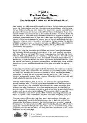 First, though, the inadequate and misleading accounts. Jesus’s resurrection does not mean that God somehow gave him a free pass on a personal basis, either because he was God’s son or for any other reason. The resurrection was not a special favour granted to Jesus and somehow, meanly, withheld from everybody else…