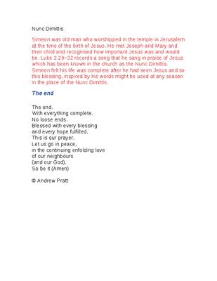 Nunc Dimittis - Simeon's song at the birth of Jesus