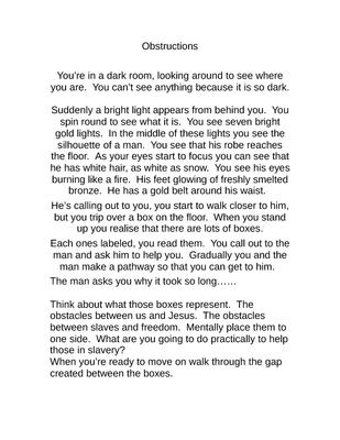 A meditation based around the idea of obstacles between Us and God and how we can move them out of the way.