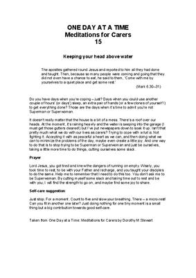 Taken from One Day at a Time: Meditations for Carers by Dorothy M.Stewart