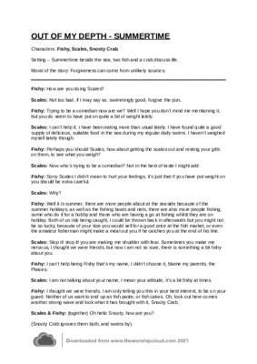 Summertime beside the sea, two fish and a crab discuss life.