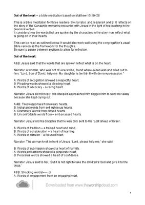 Out of the heart – a bible meditation based on Matthew 15:10–28