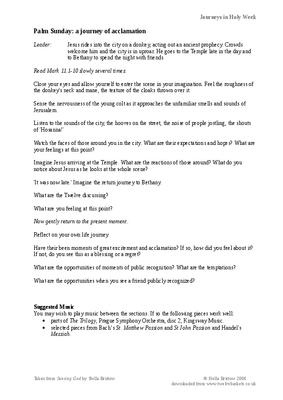 Listen to the sounds of the city, the hooves on the street, the noise of people jostling, the shouts of 'Hosanna!'