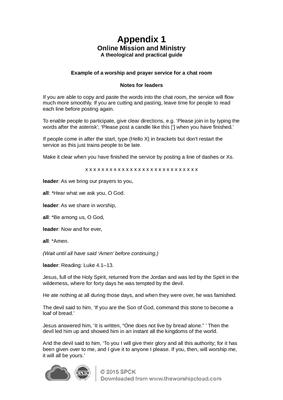 Example of a worship and prayer service for a chat room