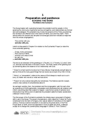 The liturgy begins with a greeting between the president and the people; in this greeting the community is gathered and bound together, and relationships are formed and acknowledged. The president may invoke the persons of the Trinity, proclaiming the worship to be offered to be in the name of Father, Son and Holy Spirit. There follows either the ancient and simplest of exchanges…