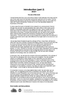 I should stress that this is not a new area of study. Paul’s attitude to the body and his use of soul, spirit and mind has been extensively explored over the years,7 but the debates and discussions among New Testament scholars have not, as is often the case with Pauline scholarship, trickled out to non-Paul specialists despite the importance of the topic…