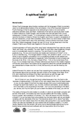 Where Paul’s language about bodies overlaps with his language of flesh is precisely when he is talking about bodies of the old creation. One of the important features of Paul’s theology is that he appears to be attempting to make a new and subtle distinction between body and flesh…