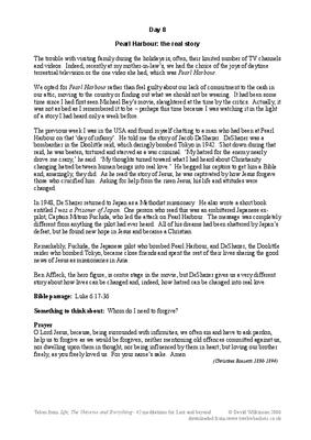 Thoughts taken from TV, Books and life experiences on various topics and given a Christian slant to stimulate thoughts. The topic here for Day 8 is 'Pear Harbour'. Bible reading: Luke 6:17-36