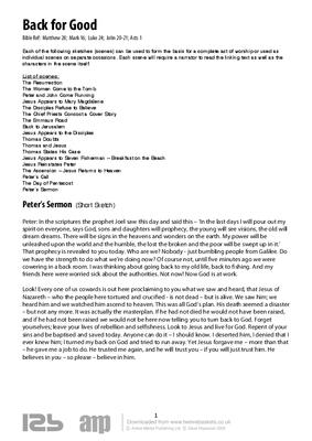 Each of the following sketches (scenes) can be used to form the basis for a complete act of worship or used as individual scenes on separate occasions. Each scene will require a narrator to read the linking text as well as the characters in the scene itself.