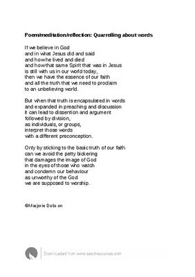 Poem/meditation/reflection: Quarrelling about words