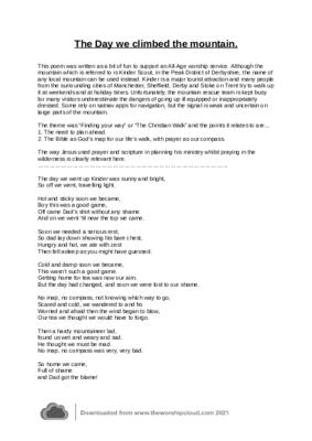 This poem was written as a bit of fun to support an All Age worship service. Although the mountain which is referred to is Kinder Scout, in the Peak District of Derbyshire, the name of any local mountain can be used instead. The theme was “Finding your way” or “The Christian Walk” and the points it relates to are:
