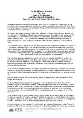 Saint Ignatius was the third bishop of Antioch, from 70 to 107, the date of his martyrdom. At that time, Rome, Alexandria, and Antioch were the three great metropolises of the Roman Empire…