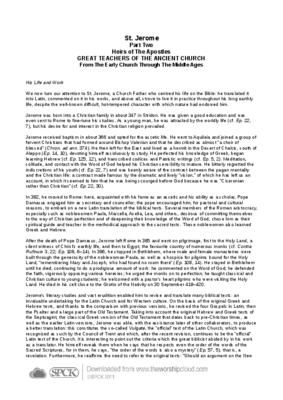We now turn our attention to St. Jerome, a Church Father who centred his life on the Bible: he translated it into Latin, commented on it in his works, and above all, strove to live it in practice throughout his long earthly life, despite the well-known difficult, hot-tempered character with which nature had endowed him…