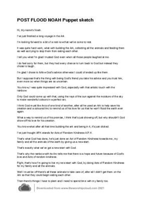 Here is a puppet sketch based upon Noah once the flood has passed and is thanking God for his promise in the rainbow