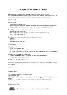 Matthew 26:69-75 leaves Peter weeping bitterly over his betrayal of Jesus. This is a prayer that he might have prayed later that night, after he had calmed down a bit.