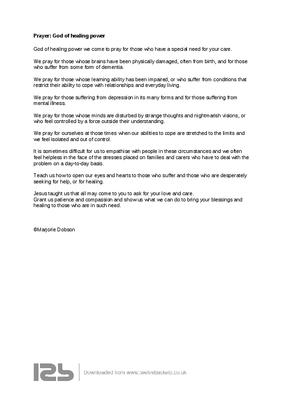 We pray for those whose learning ability has been impaired, or who suffer from conditions that restrict their ability to cope with relationships and everyday living.