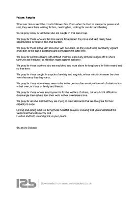We pray for those who are full-time carers for a person they love and who rarely have opportunities for respite from that burden.