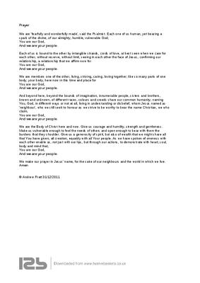 We are 'fearfully and wonderfully made', said the Psalmist. Each one of us human, yet bearing a spark of the divine, of our almighty, humble, vulnerable God;