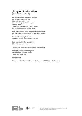Taken from Candles and Conifers By Ruth Burgess Published by Wild Goose Publications.