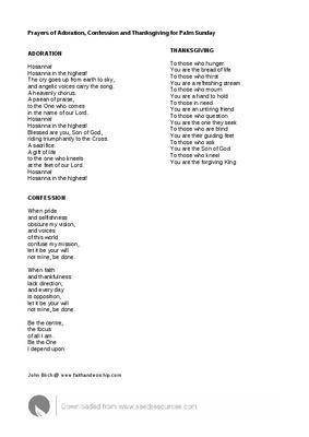 Prayers of Adoration, Confession and Thanksgiving for Palm Sunday