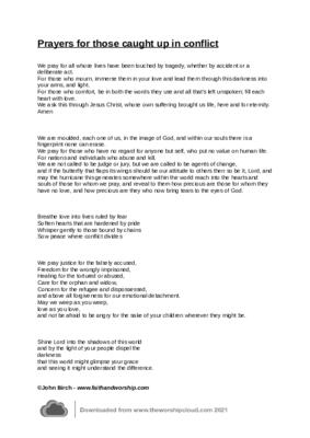 Prayers for those caught up in conflict