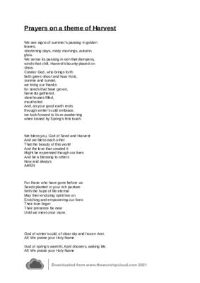 Some new prayers on a theme of Harvest.