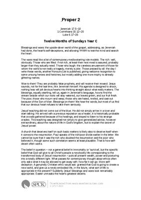 Blessings and woes: the upside-down world of the gospel, addressing, as Jeremiah had done, the heart’s self-deceptions, and allowing YHWH to test the mind and search the heart.