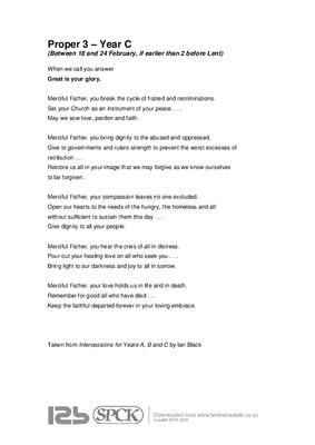 When we call you answer Great is your glory. Merciful Father, you break the cycle of hatred and recriminations. Set your Church as an instrument of your peace . . .