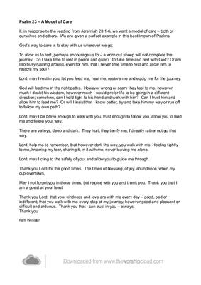 If, in response to the reading from Jeremiah 23:1-6, we want a model of care – both of ourselves and others. We are given a perfect example in this best known of Psalms.
