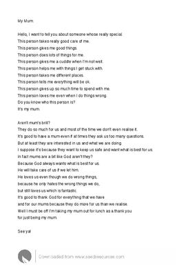A puppet talk for Mothering Sunday about being appreciative of all that mums do.