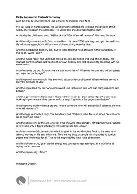 Reflection/drama: Psalm 72 for today