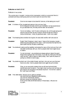 The prophet plays it straight – looking at the congregation, whilst our pessimistic friend is animated and keeps interrupting Joel as he tries to give his word from God.