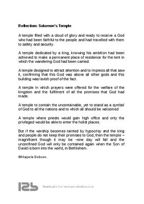 A temple filled with a cloud of glory and ready to receive a God who had been faithful to the people and had travelled with them to safety and security.