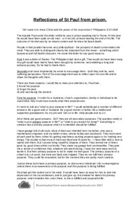 These reflections/sermon (1375 words) focus on his purpose in life, forgetting the past and facing the present.