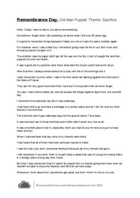 An Old Man puppet sketch for Remembrance Day based upon Remembering and Sacrifice.
