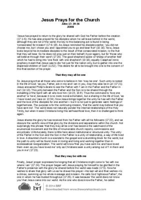 ‘Jesus has prayed to return to the glory he shared with God his Father before the creation (17:1–5). He has also prayed for his disciples whom he will leave behind in the world, although they are not of the world; the key to this balancing act is found in being ‘consecrated for mission’ (17:6–19)…