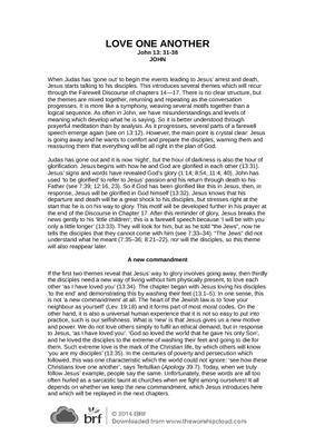 When Judas has ‘gone out’ to begin the events leading to Jesus’ arrest and death, Jesus starts talking to his disciples. This introduces several themes which will recur through the Farewell Discourse of chapters 14—17…